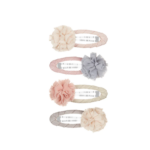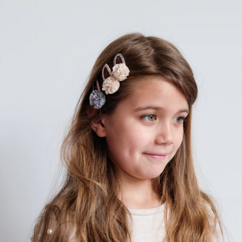 Hemos tomado la esencia de nuestros súper populares pompones clic clacs y los hemos vuelto a imaginar en un suave pompón de tul. ¡Seguro que resaltarán el brillo de tu pequeño!