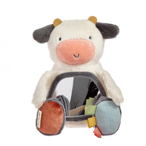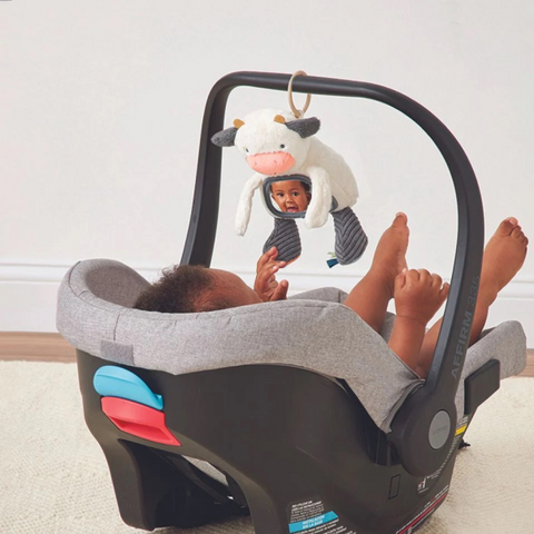 ¡Los objetos en Itzy Bitzy Mirror™ son más lindos de lo que parecen! Observe cómo su bebé sonríe ante su reflejo en el espejo, alcanza los pies texturizados y agarra las cintas. Colóquelo en el asiento de su automóvil para disfrutar de entretenimiento y juegos sensoriales mientras viaja. ¡El tiempo boca abajo nunca se vio mejor!