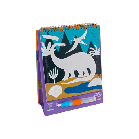 NUESTROS CUADERNOS DE AGUA MÁGICA SON MUY DIVERTIDOS!. COMO NUESTRAS POPULARES TARJETAS DE AGUA, LLENAR LA PLUMA CON AGUA Y COLOR EN LOS DISEÑOS PARA VERLOS MÁGICAMENTE APARECER, Y LUEGO DESAPARECER UNA VEZ SECO. LAS 6 LÁMINAS DIVERTIDAS DE COLORES BRILLANTES SE MANTIENEN JUNTAS EN UNA ALMOHADILLA EN ESPIRAL PERMITIÉNDOLE VOLTEAR UNA VEZ COMPLETA. EL CABALLETE INCORPORADO PERMITE USARLO COMO UN ARTISTA APROPIADO. LA ALMOHADILLA ES REUTILIZABLE UNA Y OTRA VEZ PARA QUE TE DIVIERTAS MUCHO REVELANDO A LOS COLORIDOS DINOSAURIOS, CAVERNÍCOLAS, FÓSILES Y MÁS. UNA VEZ QUE HAYA TERMINADO SU SESIÓN CREATIVA, CIERRE LA ALMOHADILLA Y ASEGURE SU PLUMA DE AGUA ESPECIAL EN EL CIERRE ELÁSTICO PARA MANTENERLO AGRADABLE Y SEGURO. ESTA ALMOHADILLA PORTÁTIL ES PERFECTA PARA SALIR Y ALREDEDOR (Y NO TIENES QUE PREOCUPARTE POR CUALQUIER DESASTRE TAMPOCO.)
