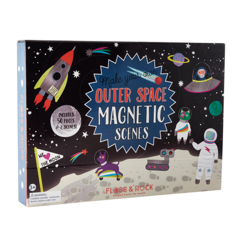 Echa un vistazo a nuestras escenas de juegos magnéticos, que presentan dos fondos intercambiables de historias de imágenes dentro de la nave espacial o en la luna. Se pueden tener horas de diversión creando obras maestras con más de 50 piezas magnéticas. Dobla la tapa de la caja y almacene las piezas magnéticas en el práctico cajón para un fácil almacenamiento, ¡perfecto para en casa o en la marcha!