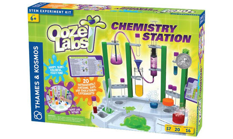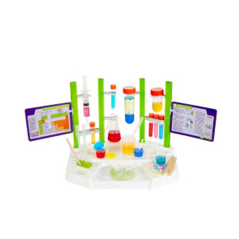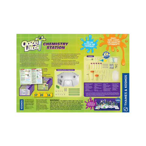 Tome sus vasos de precipitados y tubos de ensayo y acérquese a su estación de laboratorio especial para algunos emocionantes experimentos de química. Vea lo divertida que puede ser la química mientras realiza experimentos viscosos, efervescentes, coloridos y burbujeantes. Esta genial configuración de laboratorio tiene muchos recipientes y piezas de equipo de laboratorio diferentes para que los niños puedan desempeñar el papel de químico mientras realizan experimentos reales y seguros. Todos los experimentos utilizan productos químicos no peligrosos. Esta divertida introducción a los conceptos básicos de la química incluye aproximadamente 20 experimentos. Los experimentos se presentan en tarjetas impresas que se pueden pegar en la estación de laboratorio para facilitar su consulta. Los experimentos incluyen limo brillante, limo que cambia de color, reacciones efervescentes, burbujas rezumantes, arco iris en un tubo de ensayo, cromatografía, pruebas de pH de jugo de repollo, soluciones, filtrado, cristales, extintor de incendios y volcán submarino. El kit incluye una gran estación de química de plástico, tarjetas de experimentos, varios recipientes de diferentes tamaños, jeringa, taza medidora, pipeta, espátula, tubo, placa de Petri, embudo, productos químicos no peligrosos para los experimentos y manual de experimentos.
