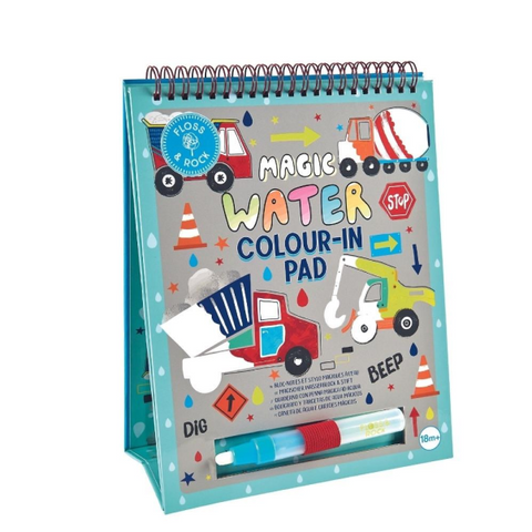¡Nuestras almohadillas de caballete de agua mágica son muy divertidas! Al igual que nuestras populares tarjetas de agua, llene el bolígrafo con agua y color en los diseños para verlos aparecer mágicamente, luego desaparecer una vez seco. Las 6 hojas divertidas de colores brillantes se mantienen juntas en una almohadilla en espiral que le permite voltearlas una vez completadas. ¡El caballete incorporado coloca la almohadilla para que pueda usarlo como un artista “adecuado”! ¡La almohadilla es reutilizable una y otra vez y te divertirás mucho revelando los coloridos excavadores, camiones, constructores y más! Una vez que haya terminado su sesión creativa, cierre la almohadilla y asegure su pluma de agua especial en el cierre elástico para mantenerla agradable y segura. Esta almohadilla portátil es perfecta para sacar y sobre (¡y tampoco tiene que preocuparse por ningún desastre!)