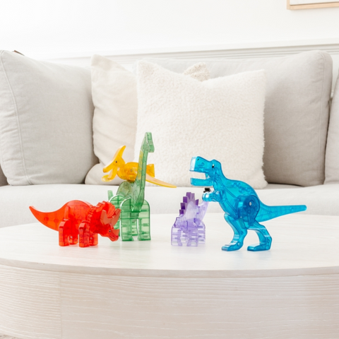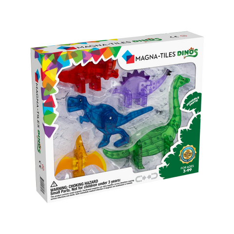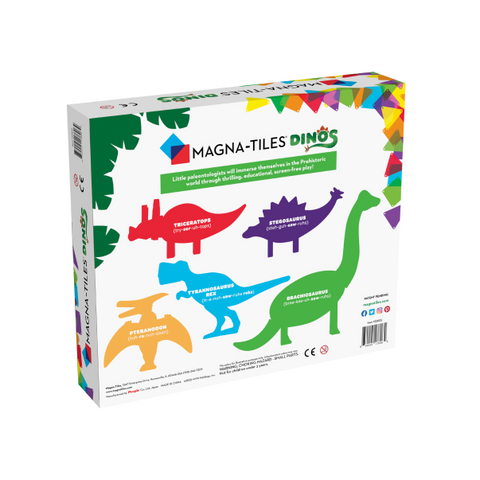Primera figura solo Magna-Tiles Set. Dé la bienvenida a estos coloridos dinosaurios a la familia Magna-Tiles®! Agréguelos a los sets existentes o juegue con ellos solos. Incluye 5 dinosaurios – Pteranodon, T-Rex, Stegosaurs, Triceratops y Brachiosaurus.