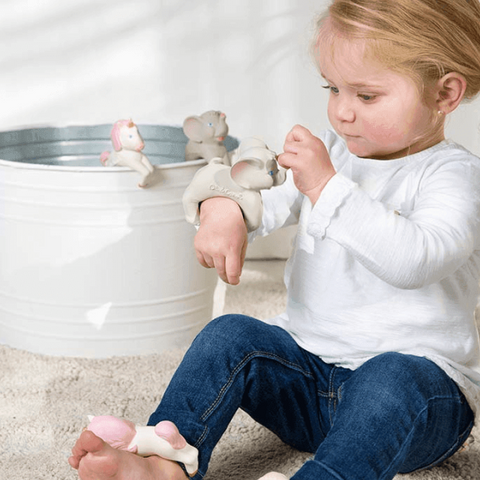 Nelly the Elephant es un mordedor y pulsera en forma de elefante que aliviará las molestias de tu bebé durante la dentición. Su textura y forma original permiten llevarlo a cualquier sitio alrededor del brazo, convirtiéndose así en un divertido acompañante de aventuras. Nelly the elephant está listo para sonreír y divertirse con tu bebé durante la hora del juego día tras día. Este juguete de caucho natural es 100% seguro e higiénico.