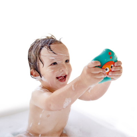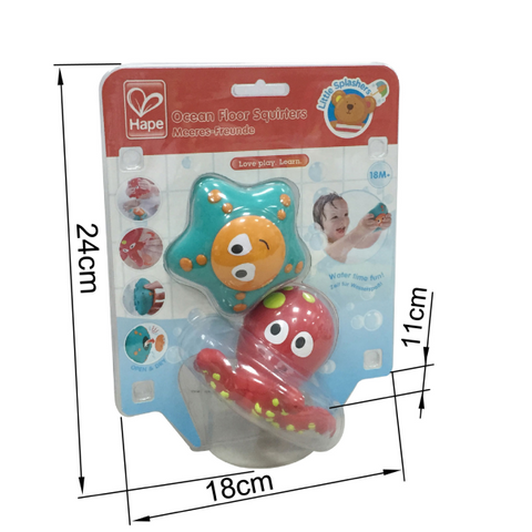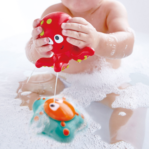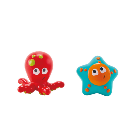 ¡Este lindo pulpo y estrella de mar tienen un secreto descarado! Si los llenas con agua y los aprietas, saldrán disparados. ¡Aporta diversión a la hora del baño!