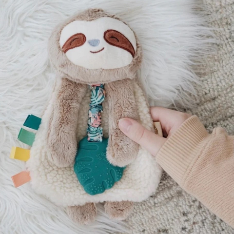 ¡Nuestra acogedora colección de juguetes Itzy Friends, Itzy Lovey™, presenta una suave tela sherpa y cintas texturizadas que al bebé le encantará explorar! Un mordedor de silicona texturizado ayuda a masajear y calmar las encías doloridas, y los brazos y piernas arrugados seguramente mantendrán al bebé entretenido con su suave sonido.