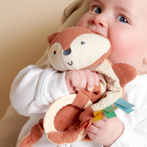 Conoce Bitzy Crinkle™, un adorable juguete sensorial para bebés que se arruga y excita. Parte de la colección Bitzy Bespoke™ de Itzy Ritzy, este juguete arrugado para bebé incluye diferentes elementos para que tu pequeño explore y disfrute. Las características incluyen tela de algodón natural suave (con la forma de un animal adorable), cintas texturizadas y un mordedor trenzado. ¡Observe cómo su hijo queda cautivado por las arrugas y las risitas de su nuevo amigo!